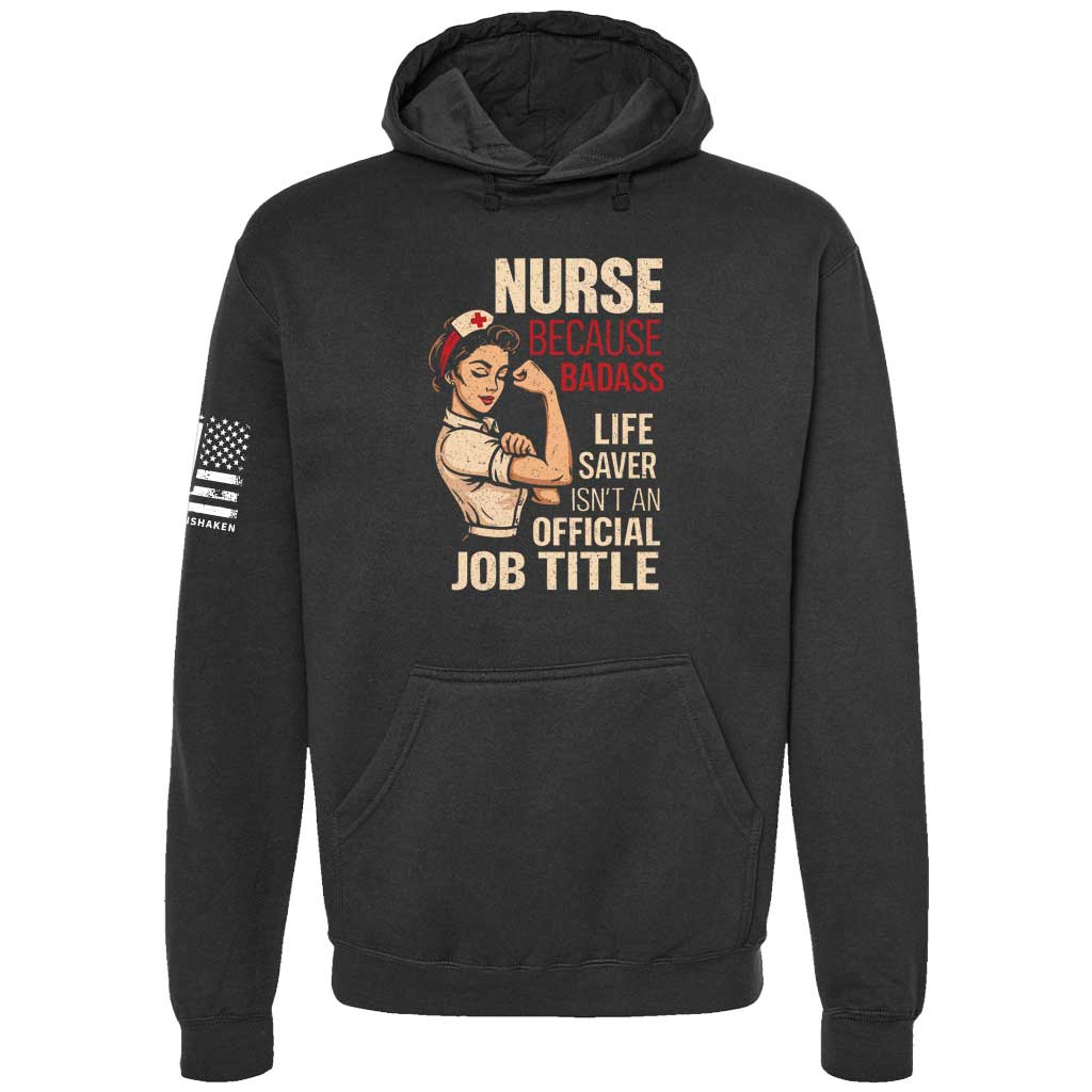 Not all heroes wear capes — some wear scrubs. The Nurse Badass Hoodie pays tribute to the women and men in healthcare who save lives every day. Featuring bold typography with the message “Nurse because badass life saver isn’t an official job title,” this design is unapologetically fierce.