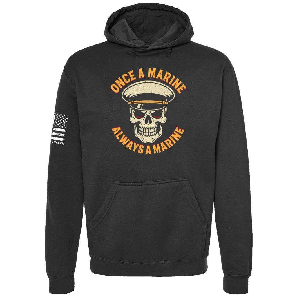 Brotherhood never fades. The Once a Marine Always a Marine Hoodie pays tribute to the United States Marine Corps and the unbreakable bond that remains long after service. Featuring a bold skull in a Marine cap, this hoodie is built for veterans, active duty, and all who live by the code.
