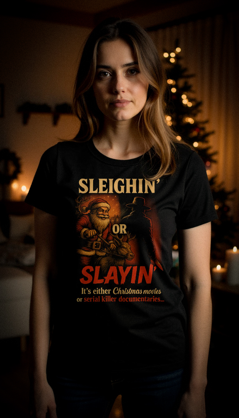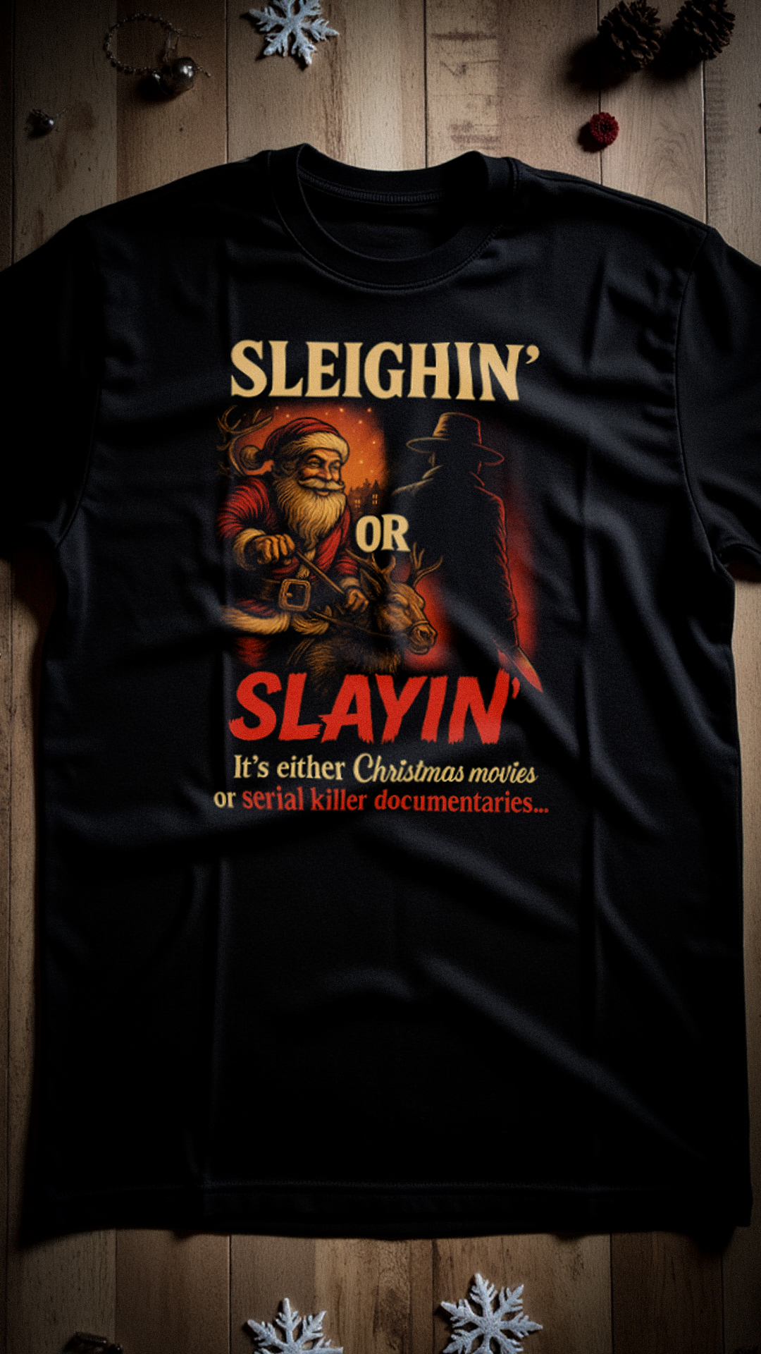 Sleighin TShirt brings together Christmas cheer and unapologetic edge for the ones who like their holidays with attitude. Designed for the hustle of the season—from shopping runs and ugly sweater parties to late-night movie marathons—it delivers a clean fit, soft feel, and a design that actually says something. Pair it with denim, joggers, or gym gear and let it carry that mix of mischief and grit that fits you better than any basic festive print. Every Genuine Valor piece is made to look good, feel good, and remind you to live with purpose—even when you’re just sleighin’ through December.